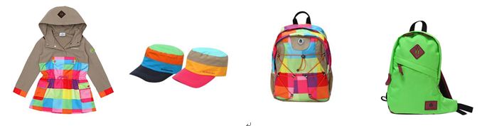 ‘캠핑스타일 백팩’은 나일론 옥스포드 조직으로 터치감과 견고함을 강조했다. 아우터와 바람막이, 우븐 원피스등의 의류 패턴과 연계된 아웃도어 스타일로 책가방뿐 아니라 피크닉, 캠핑 등 야외 활동에도 적합한 다목적 아이템이다. ‘크로스 백팩’은 나일론 옥스포드 조직으로 터치감 및 견고함 강조하였다. 형광컬러로 발랄한 느낌을 주며, 어깨끈이 하나로 되어있는 크로스 백으로 스타일리쉬하게 연출 할 수 있다. 모자와 백팩 등은 피크닉이나 캠핑 스타일링으로도 제격이다.