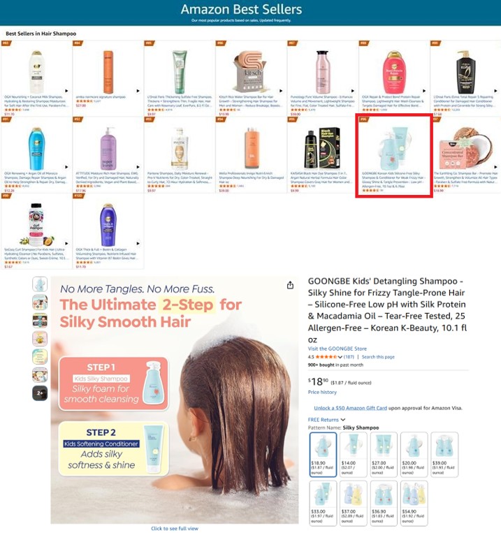 <궁중비책의 어린이용 샴푸&컨디셔너가 아마존 베스트셀러 샴푸 카테고리 순위권에 진입했다.>